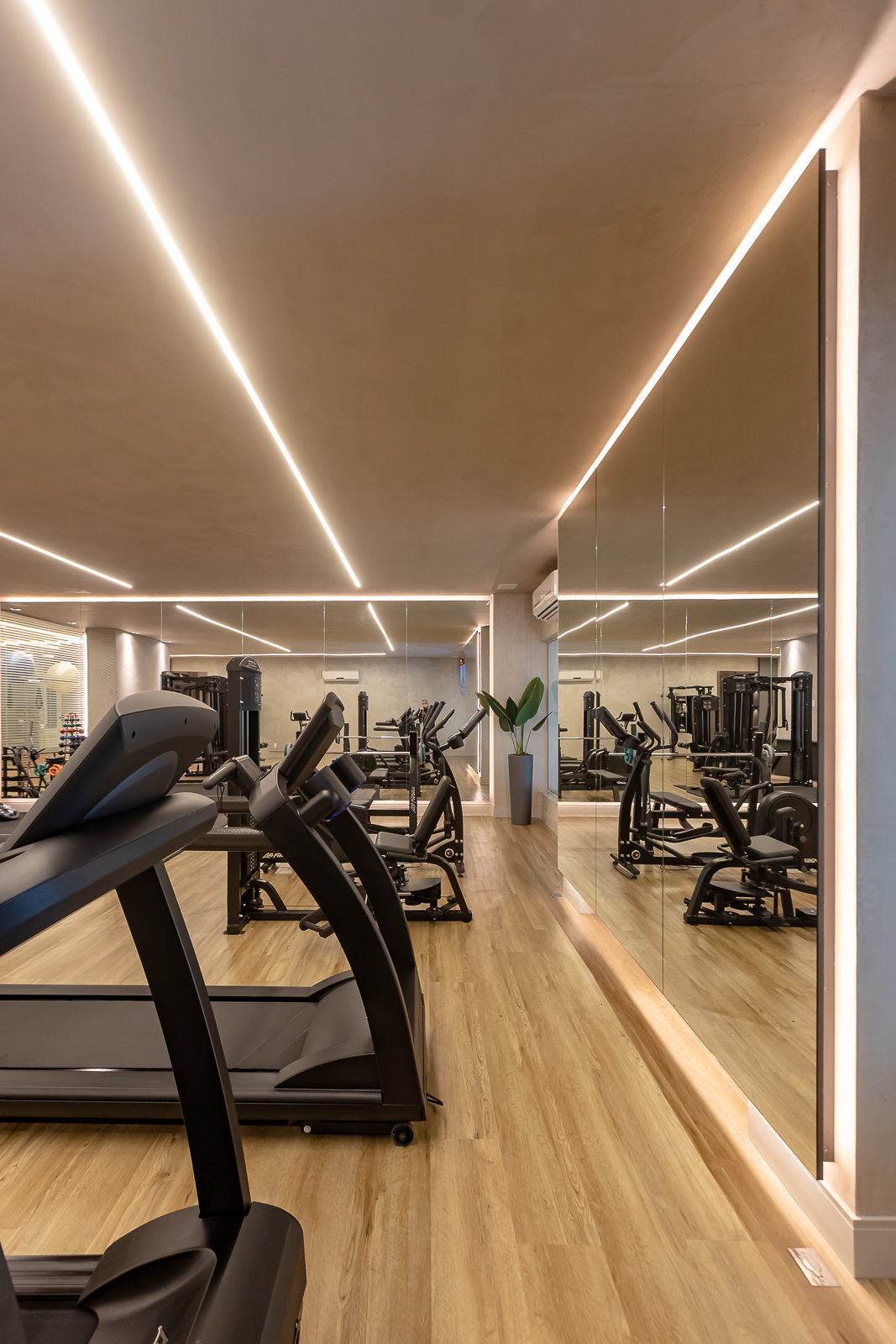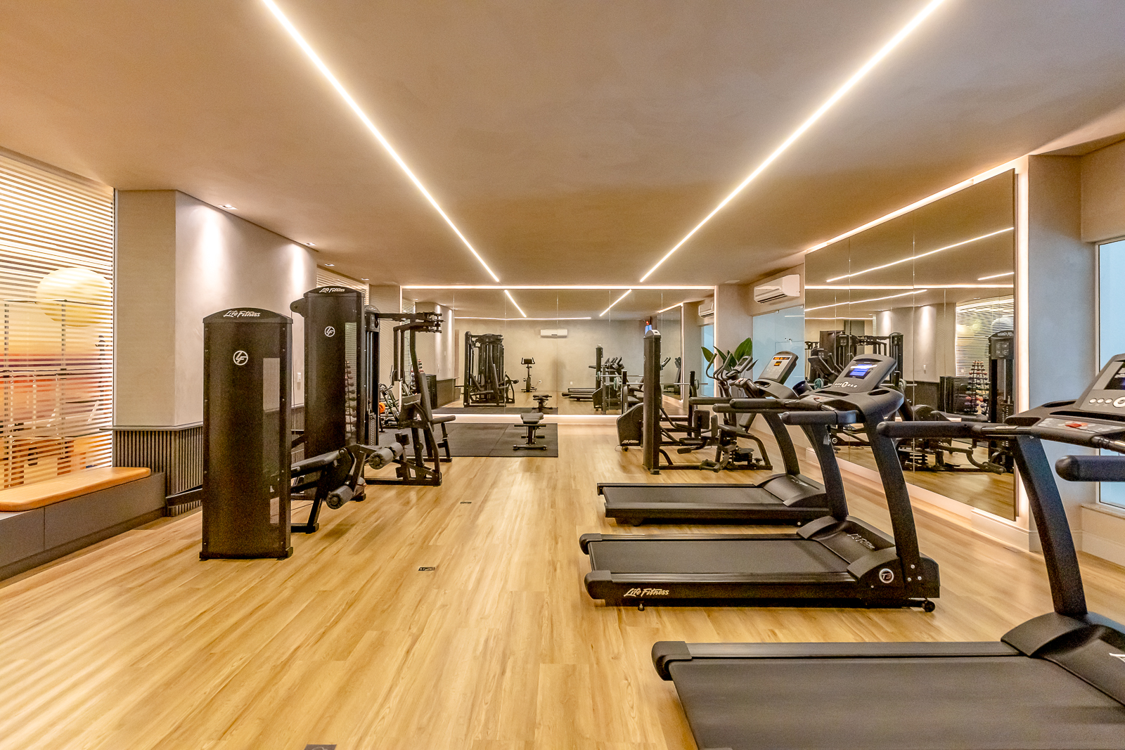 Reformamos a academia com um design contemporâneo e sofisticado, alinhado às novas necessidades dos condôminos. O processo envolveu desde a concepção do projeto, estudo de viabilidade orçamentária e gerenciamento da obra, até a revitalização dos equipamentos, troca de revestimentos, iluminação e decoração. Um espaço repensado para oferecer mais funcionalidade, bem-estar e uma experiência completa aos usuários.
