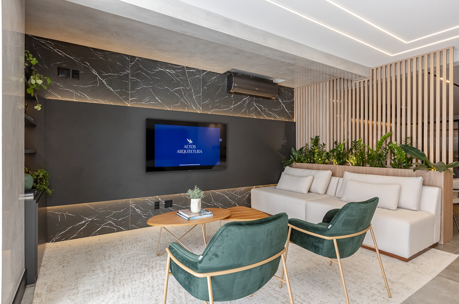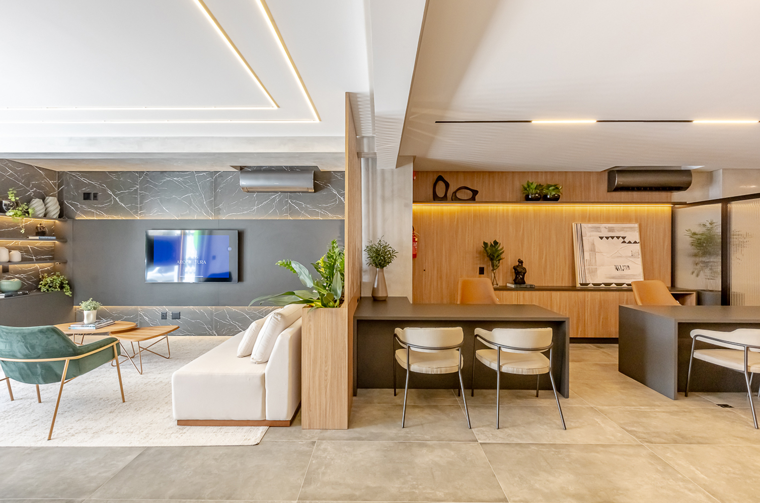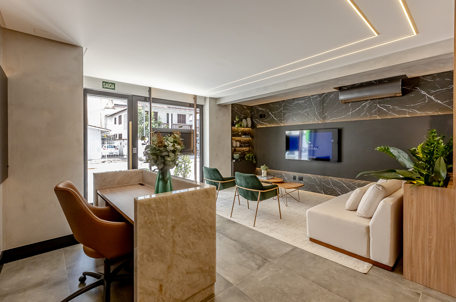 Criamos uma conexão harmoniosa entre o empreendimento, a marca e a arquitetura, proporcionando uma experiência imersiva aos clientes que estarão em contato direto com a essência da empresa.