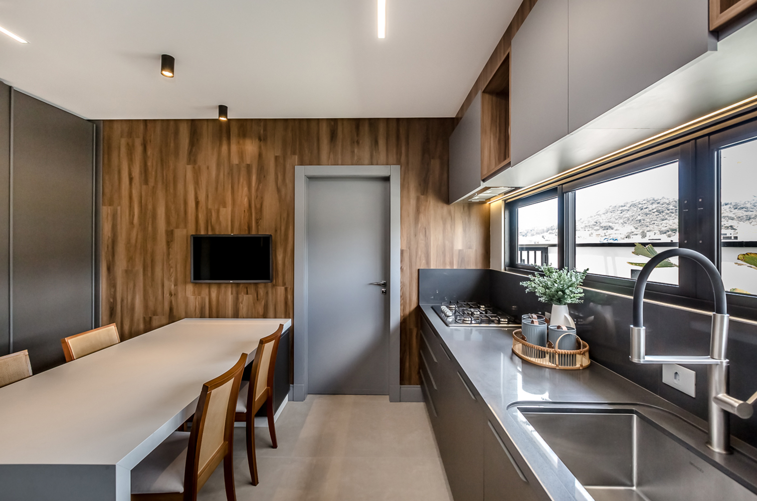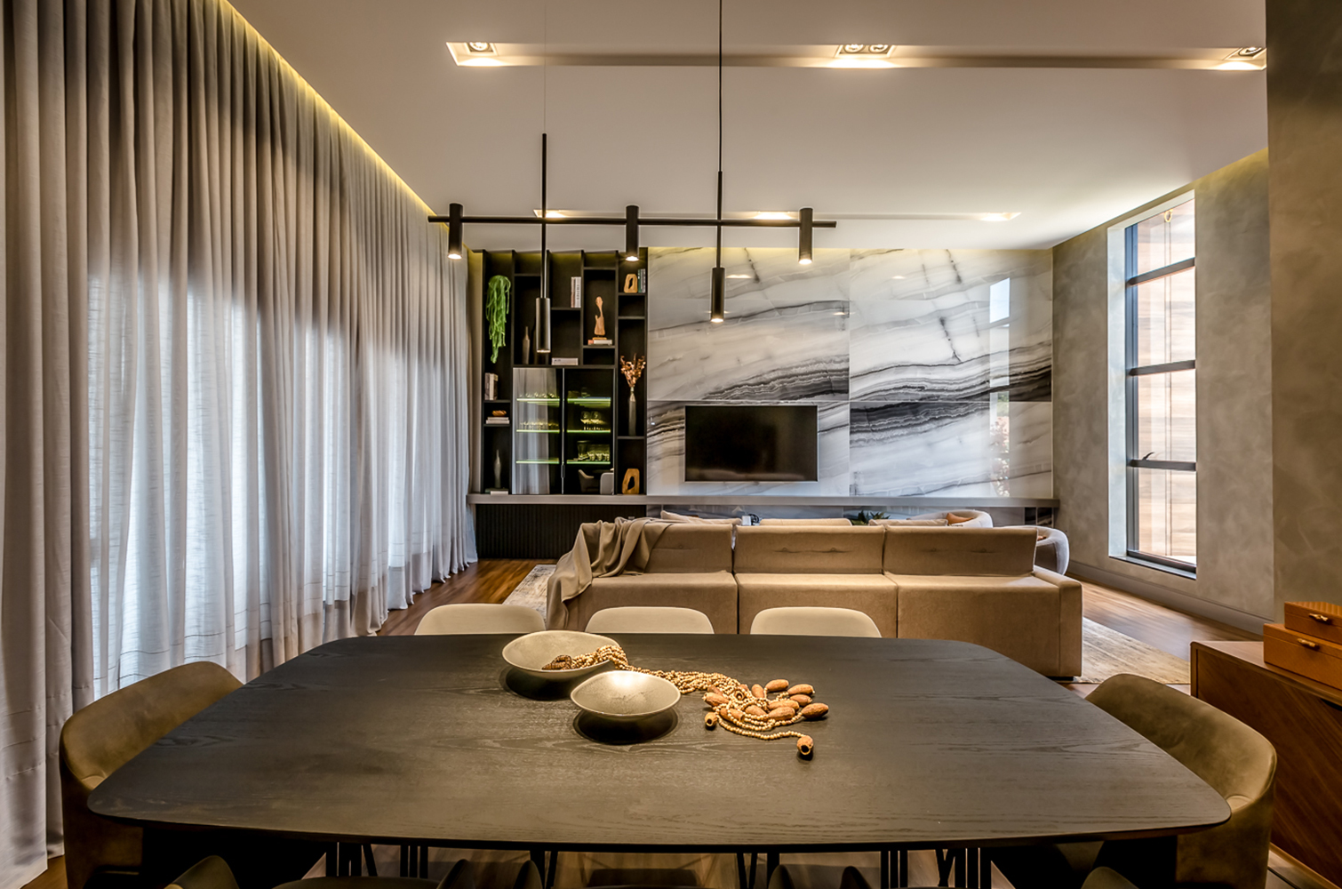 O foco principal deste projeto foi a integração dos espaços e das pessoas. Através da perspectiva do cliente, criamos ambientes contemporâneos com mobílias aconchegantes, convidando as pessoas a interagirem, indo além da arquitetura, impactando positivamente o modo de viver.